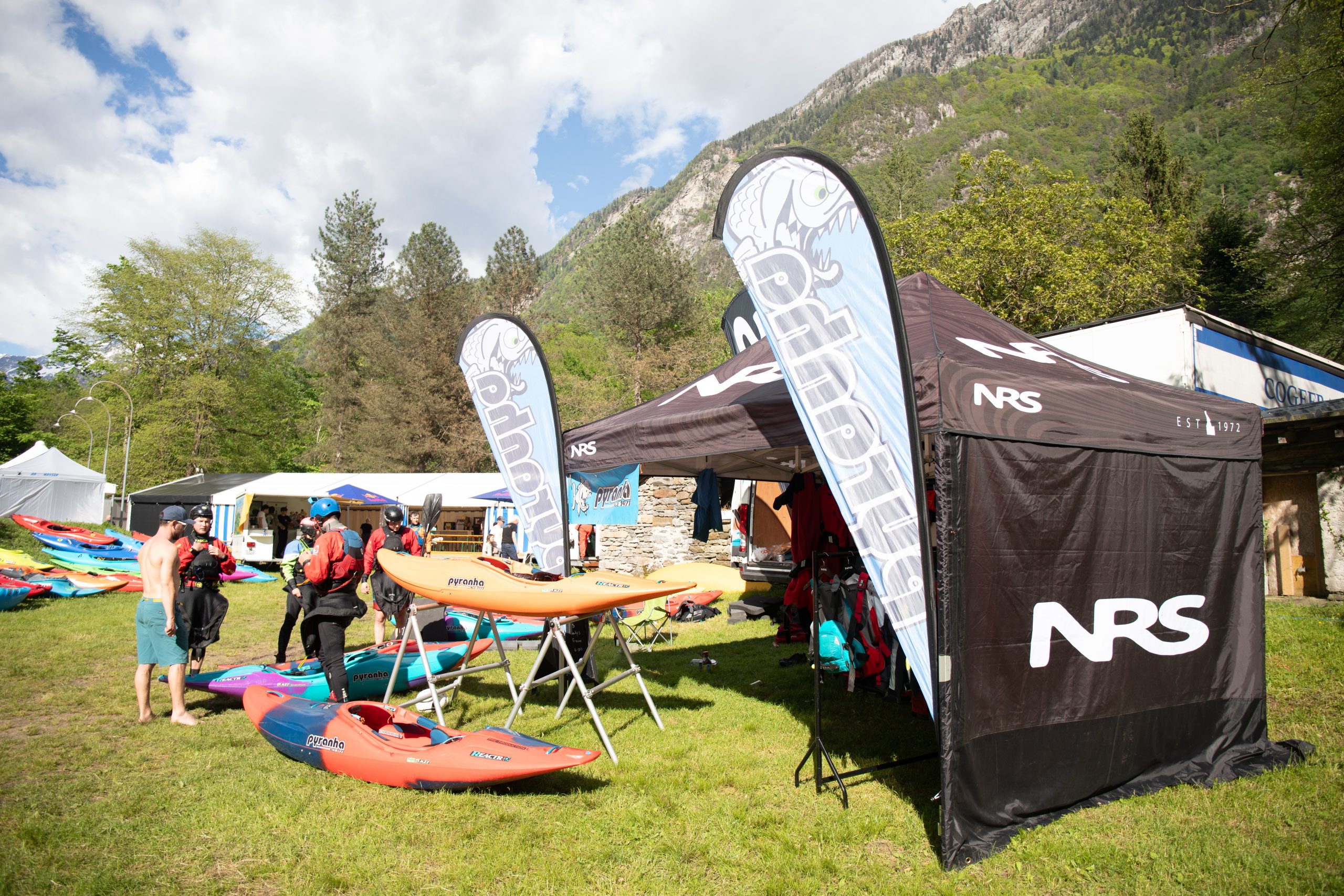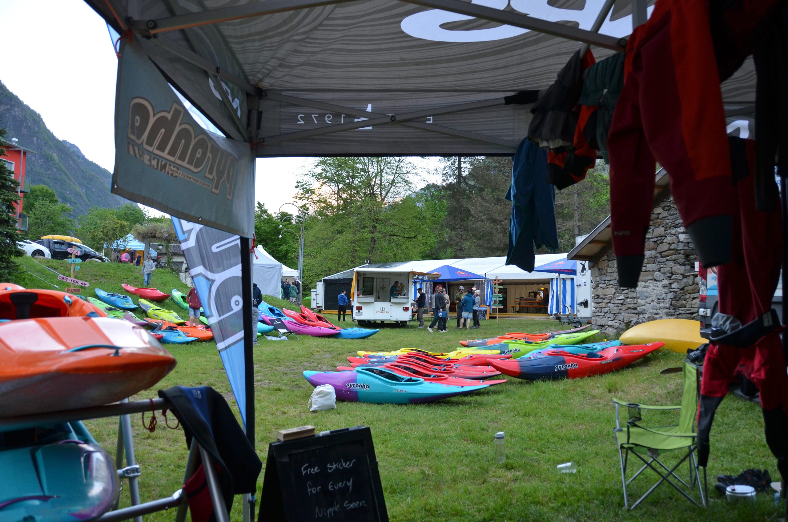 Profiwelt.ch und Pyranha.com bieten dir eine grosse Auswahl an Kajaks gratis zum Testen vor Ort an. Schreibe dich einfach beim jeweiligen Stand für das gewünschte Boot ein und ab aufs Wasser.